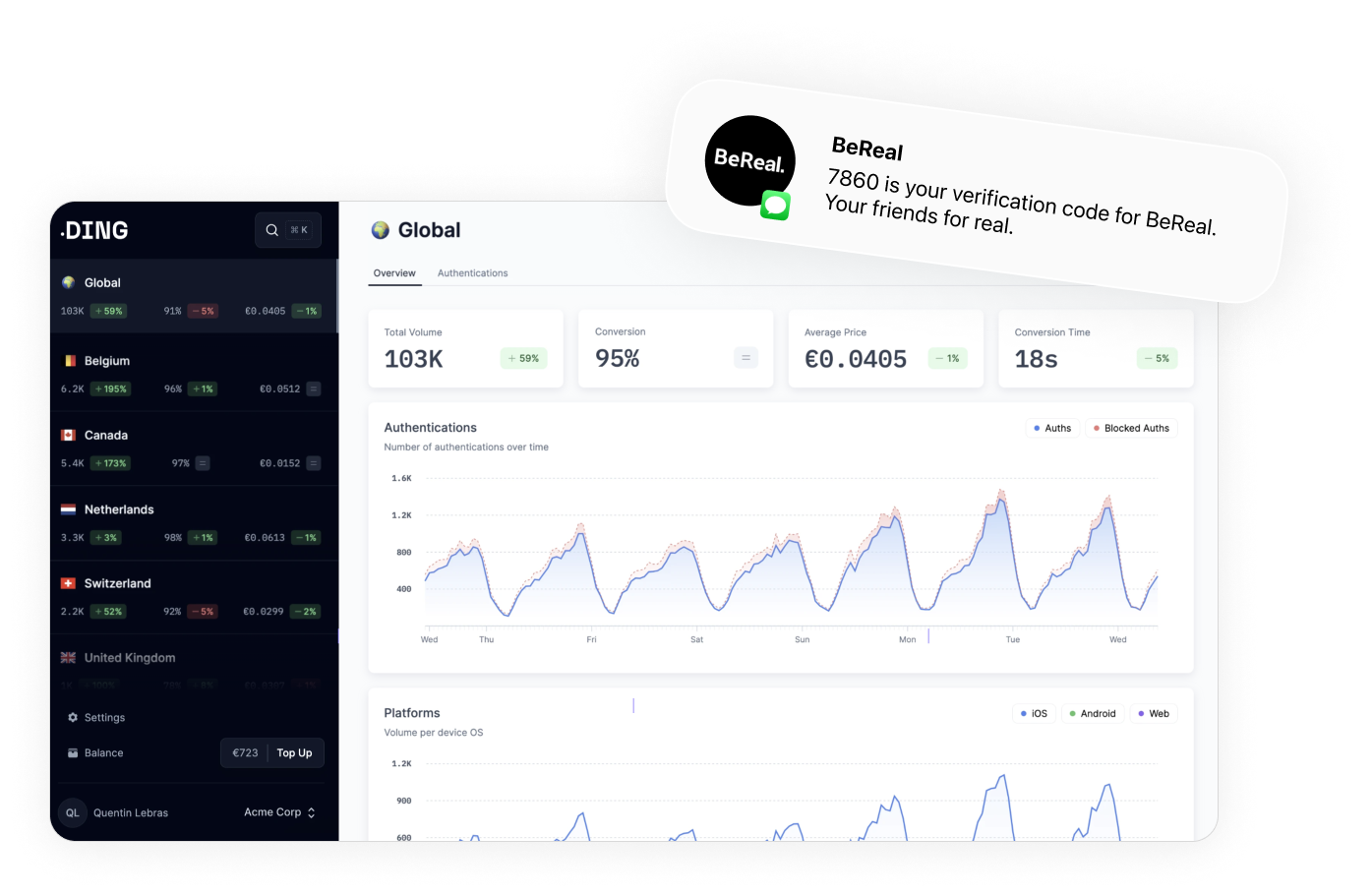 Our flagship product focuses on authentication, enabling companies to send OTP codes with the best price-to-conversion ratio available. We do this by dynamically selecting the most effective delivery channel (e.g. SMS via the optimal carrier vs. WhatsApp), while actively blocking costly spam and fraud attempts that traditional providers often miss.